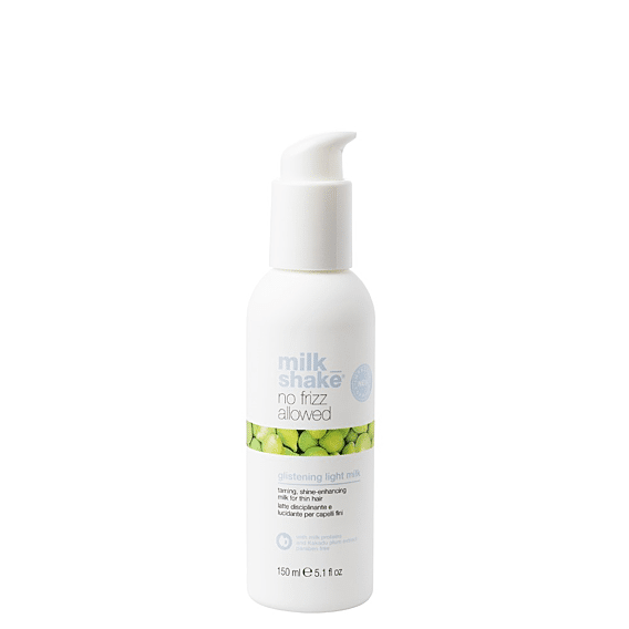 De milk_shake no frizz allowed glistening light milk is een melk die het haar glad en glanzend maakt, voor fijn haar. De oplossing om zelfs het fijnste haar te ontwarren! Glistening light milk heeft een ultralichte textuur die luchtvochtigheid controleert en overmatig, ongewenst volume voorkomt zonder het haar vettig te maken of te verzwaren. Het draagt bij aan het gladmaken van het oppervlak van de haarvezel om je een volle, zachte en handelbare haardos te geven.