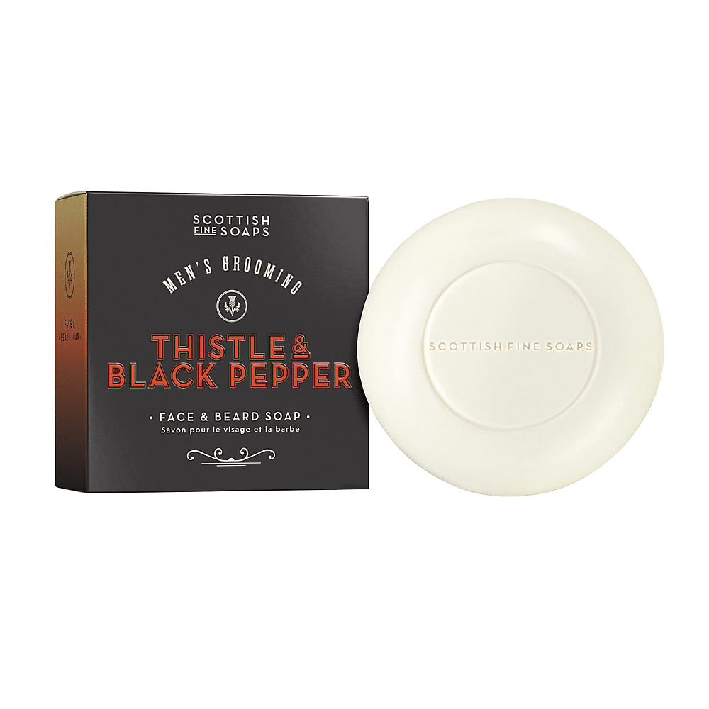 Scottish Fine Soaps Thistle & Black Pepper Face & Beard Soap in Carton