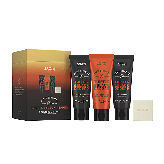 Scottish Fine Soaps Thistle & Black Pepper Signature Gift Set (3x75ml Tubes, 1x40g Soap)