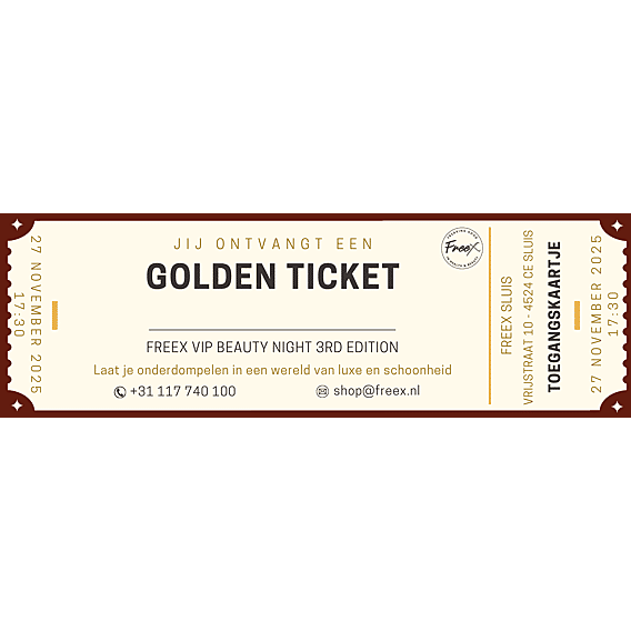 - Vergeet jouw gouden ticket niet mee te nemen naar het event. Dit is jouw toegangsbewijs.