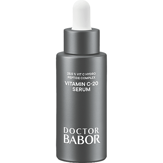 Het Babor DOC PRO Vitamin C-20 Serum is een multifunctioneel antioxidantserum met 28,5 % VIT C HYDRO PEPTIDE COMPLEX uit 20 % Ethylascorbinezuur, TGF-peptide, Betaïne en PRO-SIRT-Biosaccharide. Verbetert zichtbaar de huidtint en het uiterlijk van hyperpigmentatie voor een stralende, gelijkmatig ogende teint en een zichtbaar verfijnde en gladde huid.