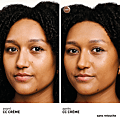 - Breng de CC Cream aan op een gereinigd gezicht, vanuit het midden naar buiten toe.